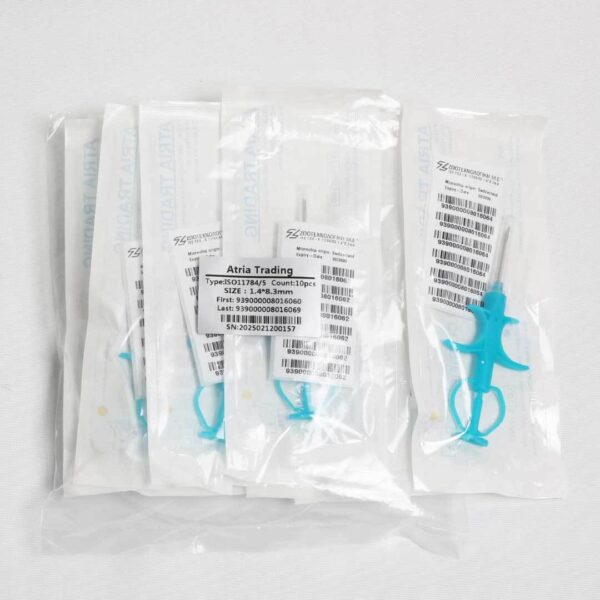 Η συσκευασία των εμφυτευμάτων είναι διάφανη πλαστική σακούλα που περιέχει δέκα (10) τεμάχια. Κάθε παρτίδα συνοδεύεται από σειριακό αριθμό για την ιχνηλασιμότητα των προϊόντων.